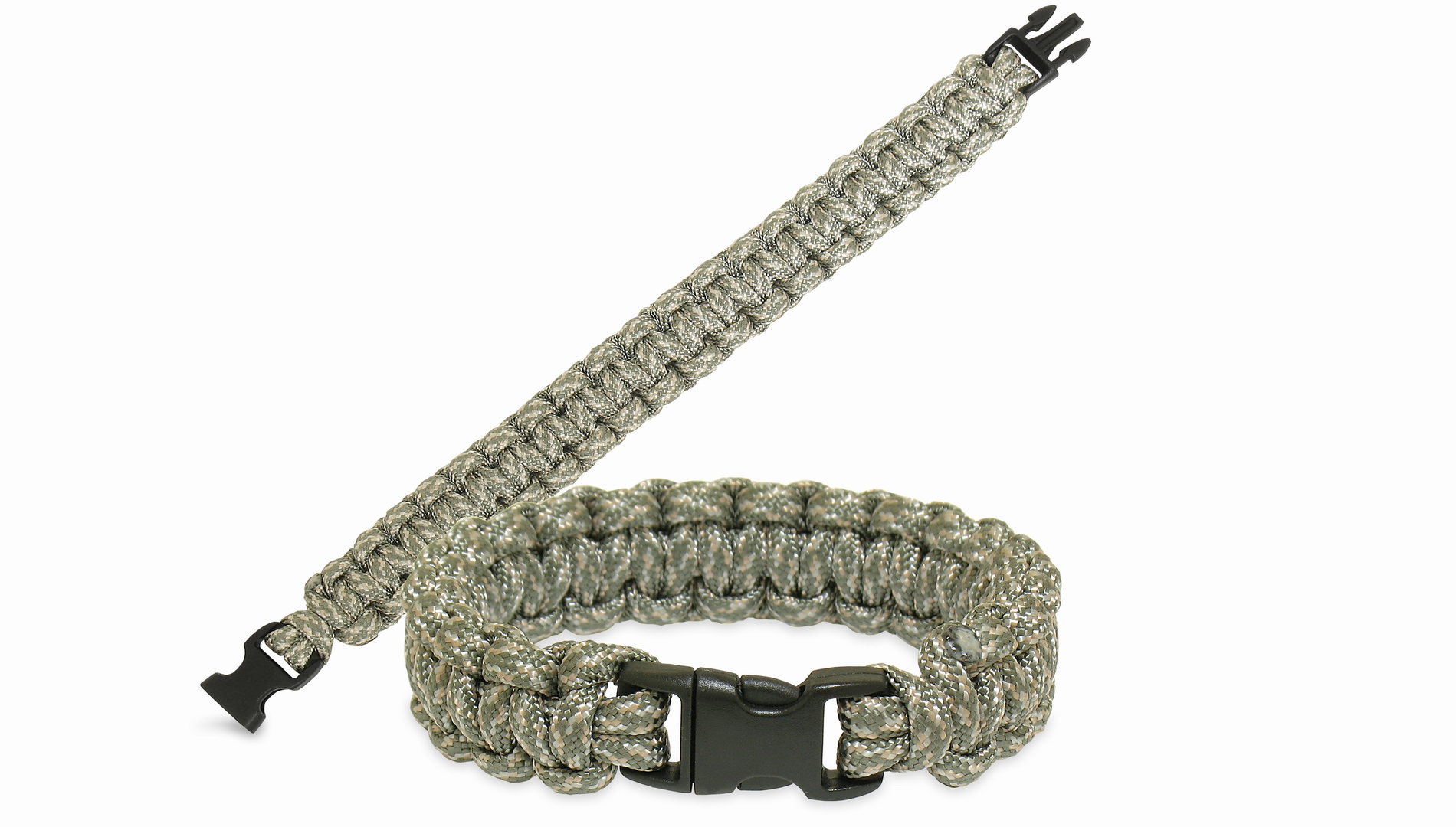 Многофункциональный плетёный "браслет выживания" изготовлен из строп парашюта и предназначен для соединения такелажа, крепления носимых вещей.
